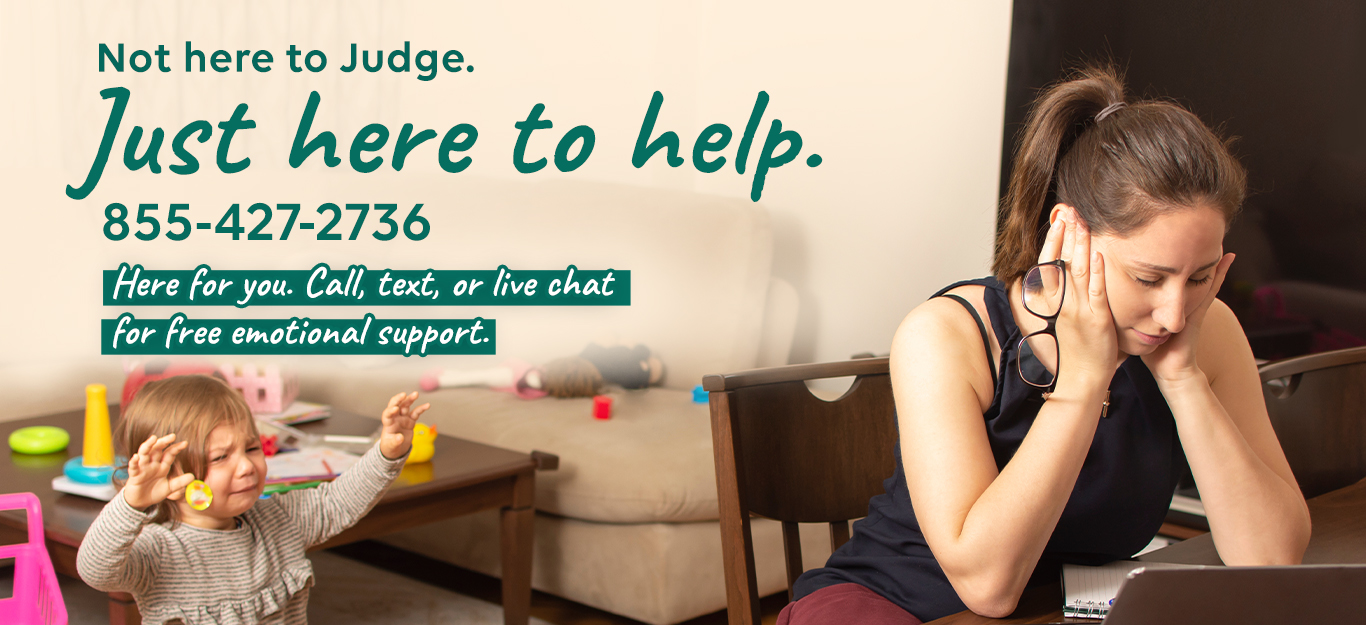 Call, text or chat us to connect with one of our trained and compassionate Helpline Counselors for free.